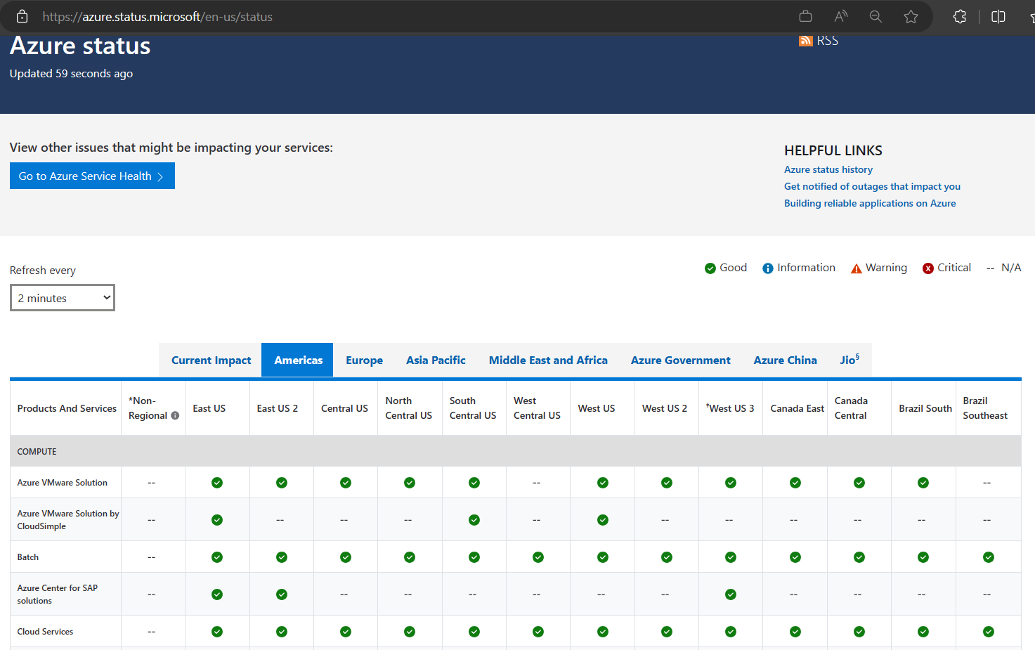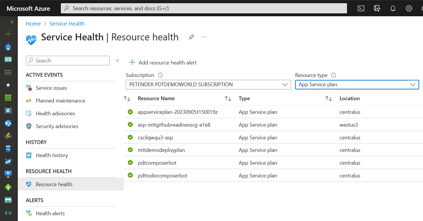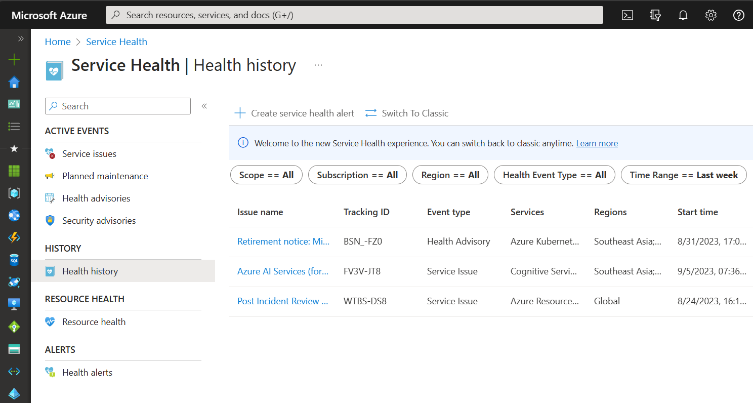 Right, checking Azure Service Health; this is actually a combination of 3 different tools in one: