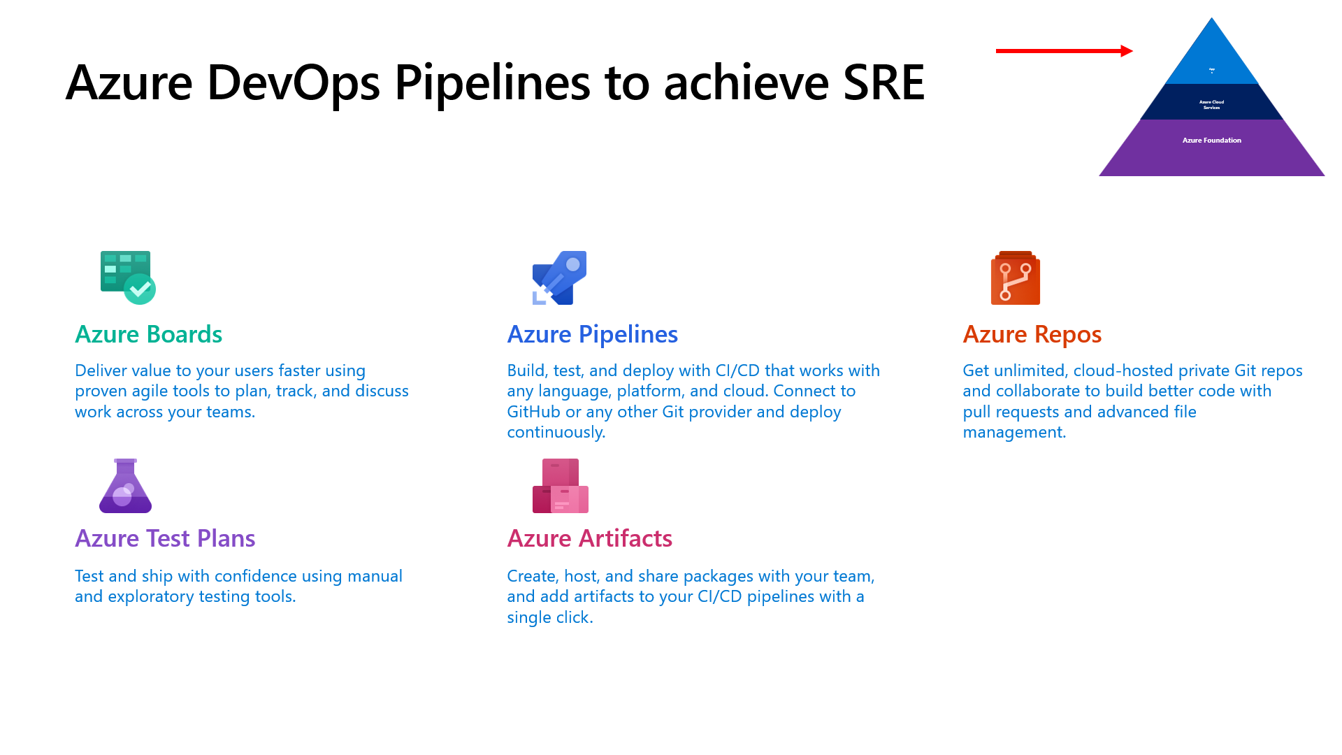 Operational Excellence Pillar: SREs focus on automation and efficient operations. Azure’s Operational Excellence Pillar provides guidance on automating tasks, reducing manual intervention, and improving operational efficiency.