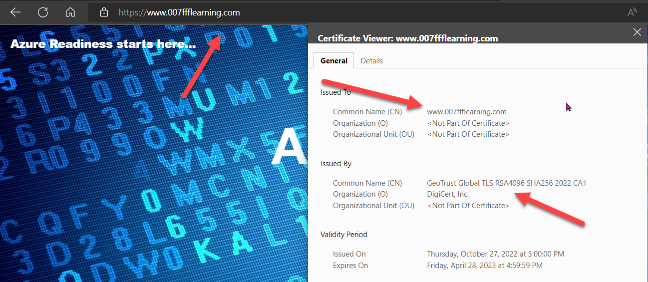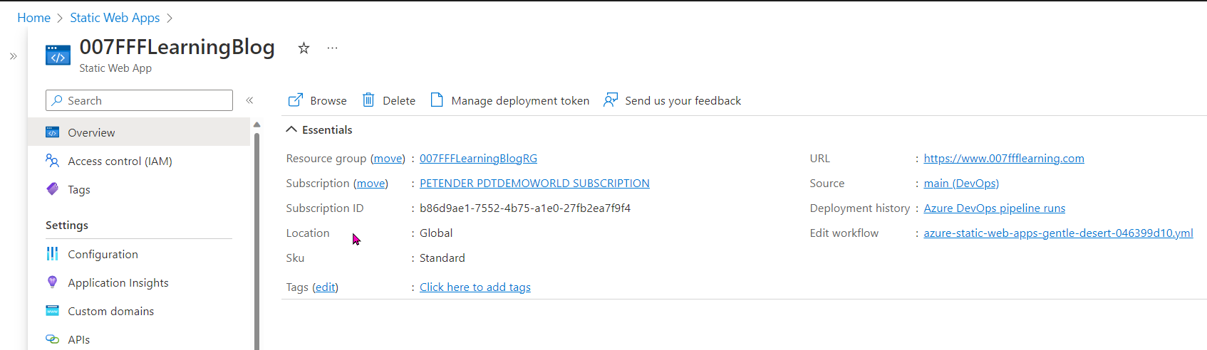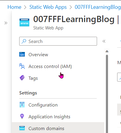 While this completes the successful migration of the Hugo blog site, we are not 100% done yet. As for now, it is only listening on the internal SWA web address, which we should update to a public domain name like www.007FFFLearning.com