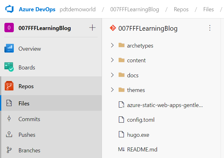 - From the DevOps environment, validate the Hugo folders and files are present in the repository.