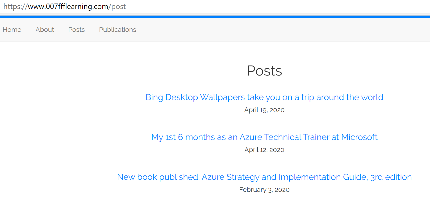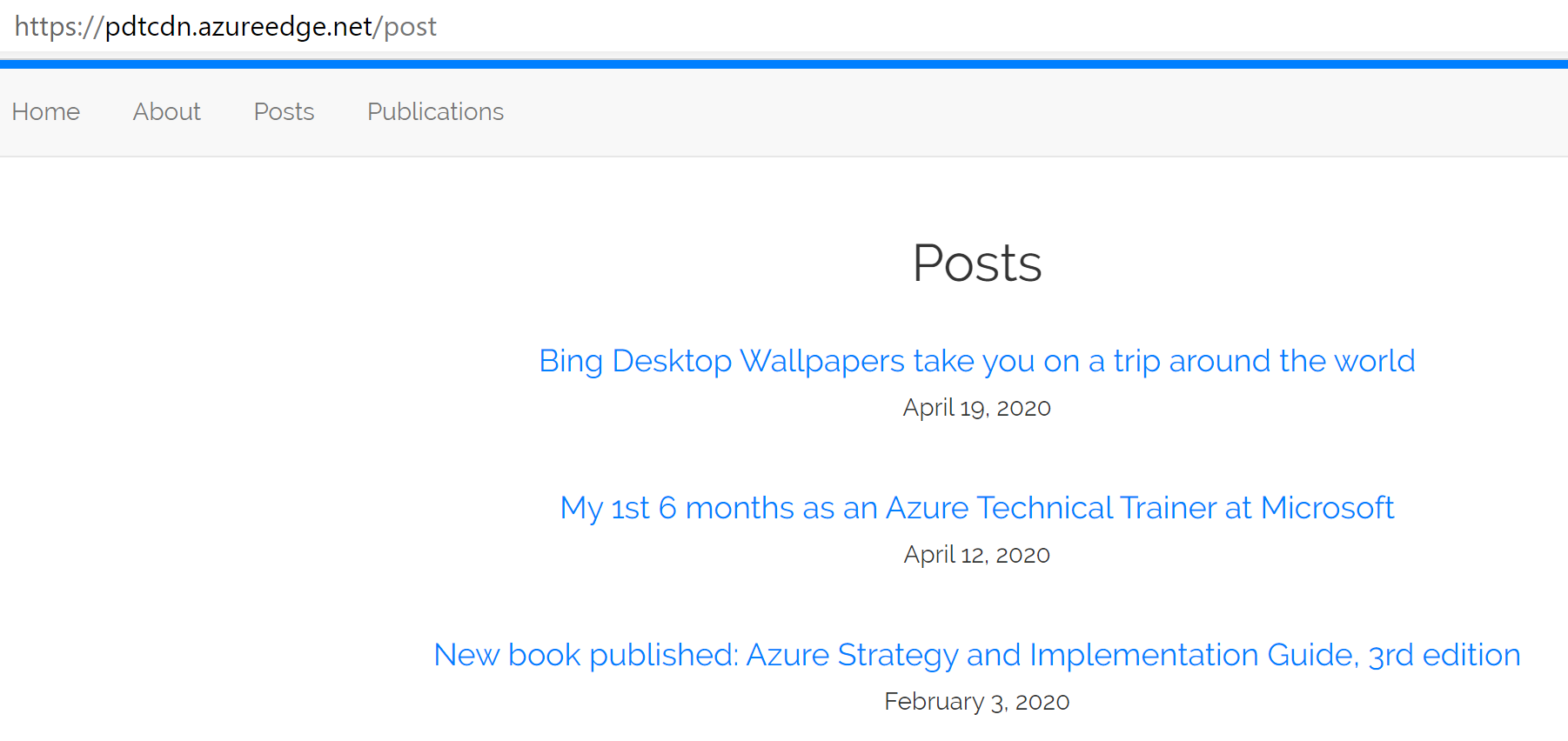 Once received, test the Azure CDN URL from the browser, and click through to a site subsection like Posts or Publications (if you have content in there…)