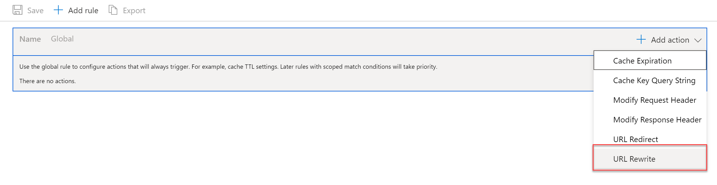 In the Rules engine / select Add Action / Choose URL Rewrite