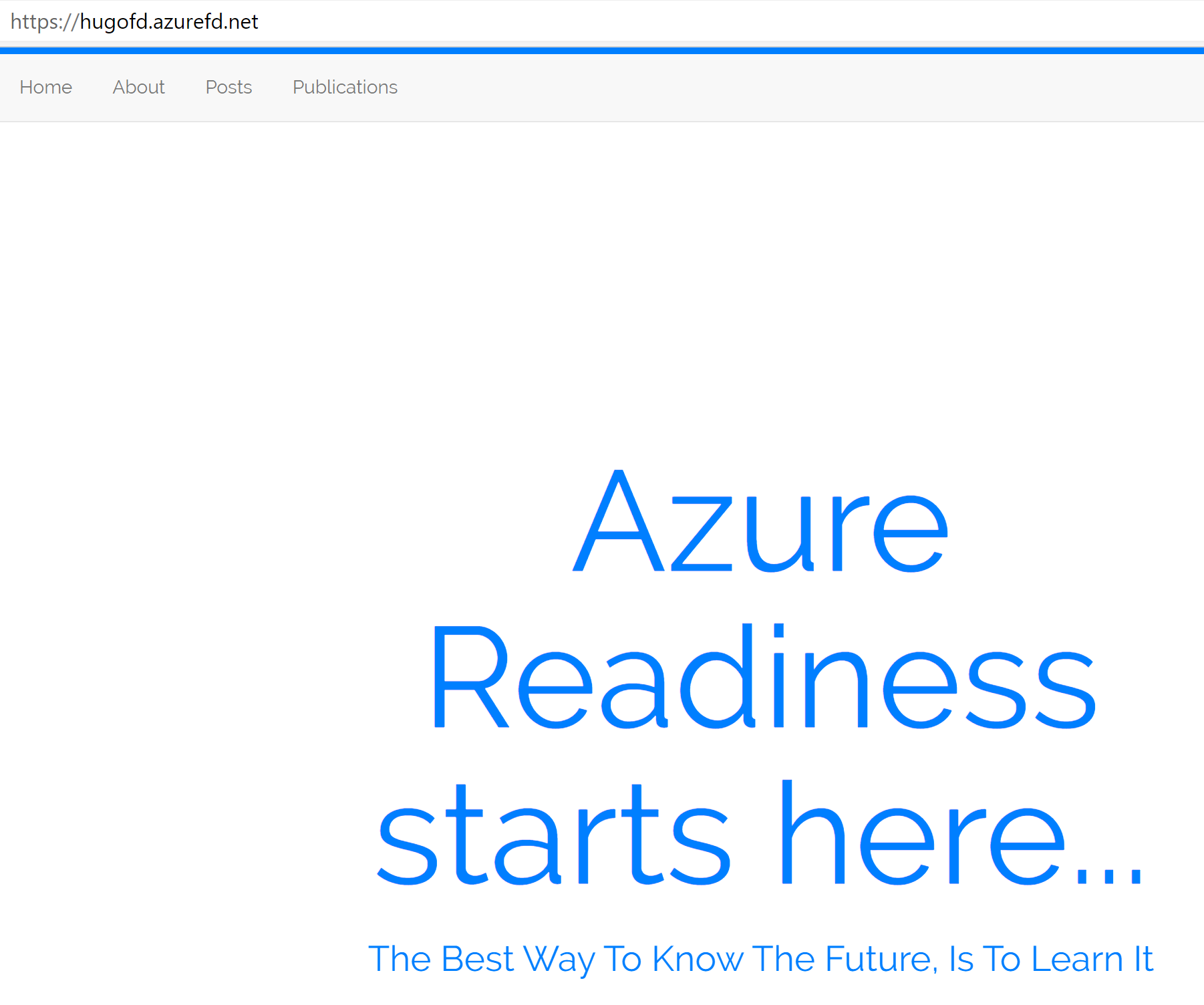 Wait for the Azure Front Door resource to get created; once this is complete, open your browser to the URL address of Front Door. This should open your web site in a nice looking way
