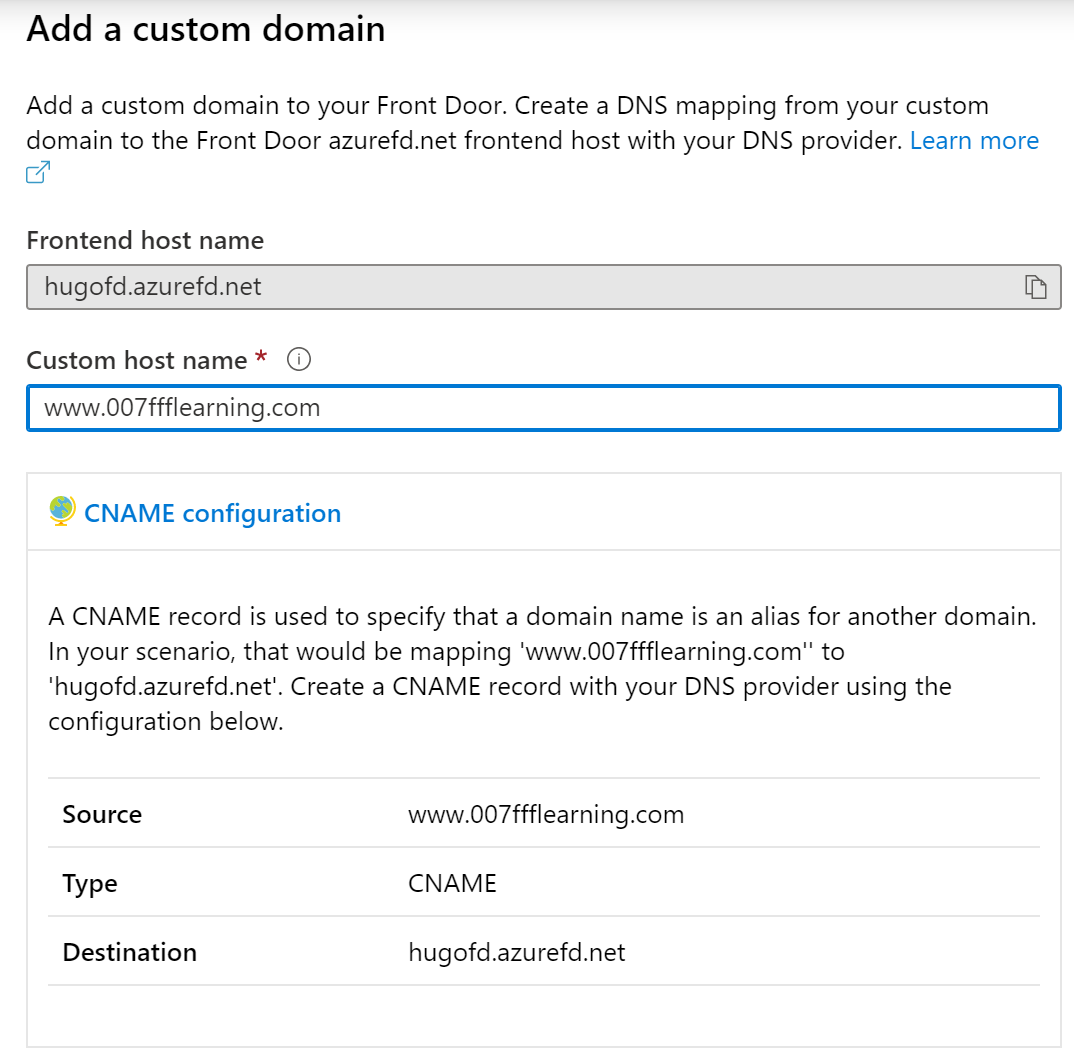 frontend/domain name you configured. E.g. my 007FFFLearning domain has a