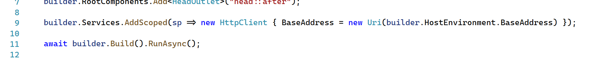 - Blazor Web Assembly already has an HTTP Client built-in, although if you want, you could also find Nuget packages that provide similar functionality – but for now, let’s stick with the built-in one. The details of this service are part of the program.cs file