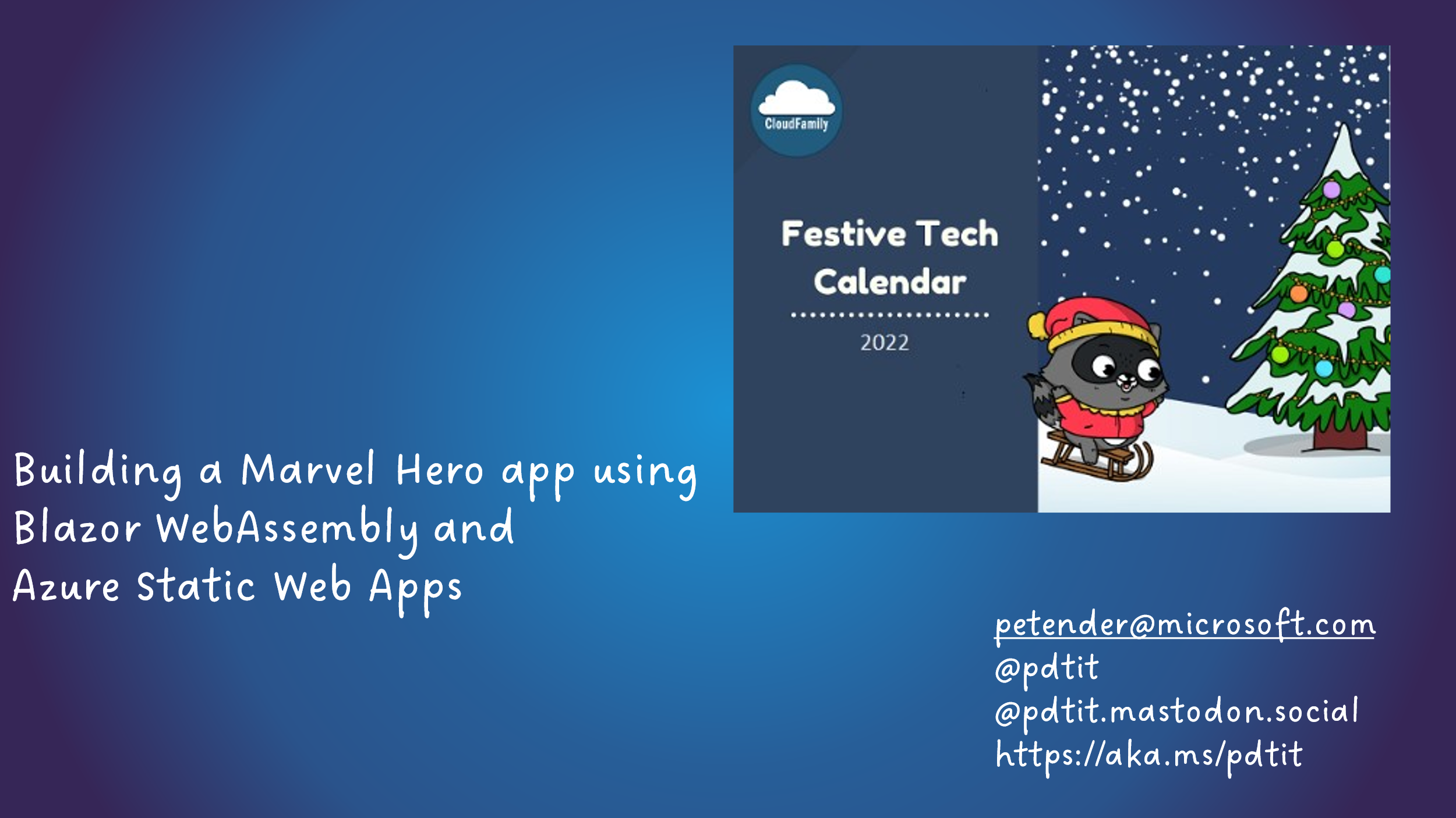 I hope you enjoy the steps, feel free to contribute to this project at petender/FestiveBlazor2022live (github.com) if you want to co-learn more Blazor stuff together with me.