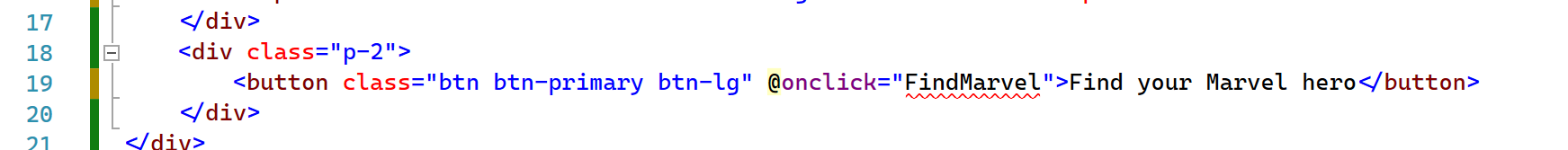 Next, we need to update the button code to actually pick up an action when clicking on it; this is done using the @onclick event