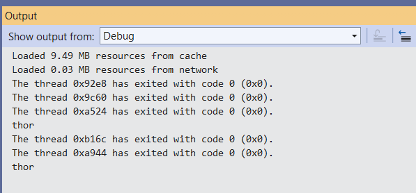 2. Enter the name of a Marvel character, for example “thor”, which will move that to the Output console. This confirms both the bind-value property as well as the search button and corresponding action behind it is working as it should be.