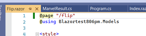 1. Since the previous page was index.razor, it’s getting loaded by design (from the index.html). so we need to update the URL to pick up the /flip page, by adding it to the end of the URL, such as https://localhost:7110?flip (note, the port number will be different on your end)