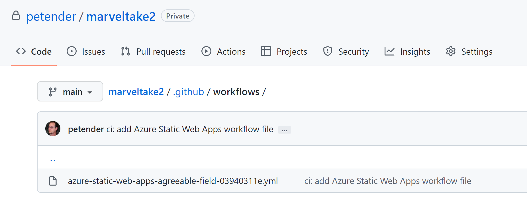 4. The YAML pipeline code is stored in the .github/workflows/ subfolder within the GitHub repository. You shouldn’t need to update this file though. It just works out-of-the-box.