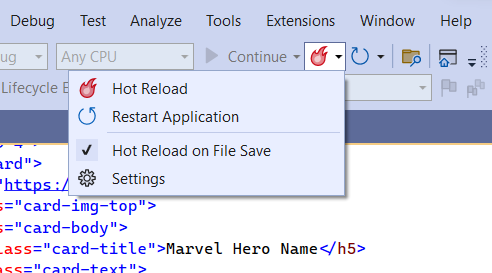 1. Now wait, we lose quite some time on stopping the app, updating code, starting it again – so what we can do is use the new VS2022 feature called Hot Reload / if I set this to “Hot Reload on Save”, it will dynamically update the runtime state of the app based on my edits. Let’s check it out.