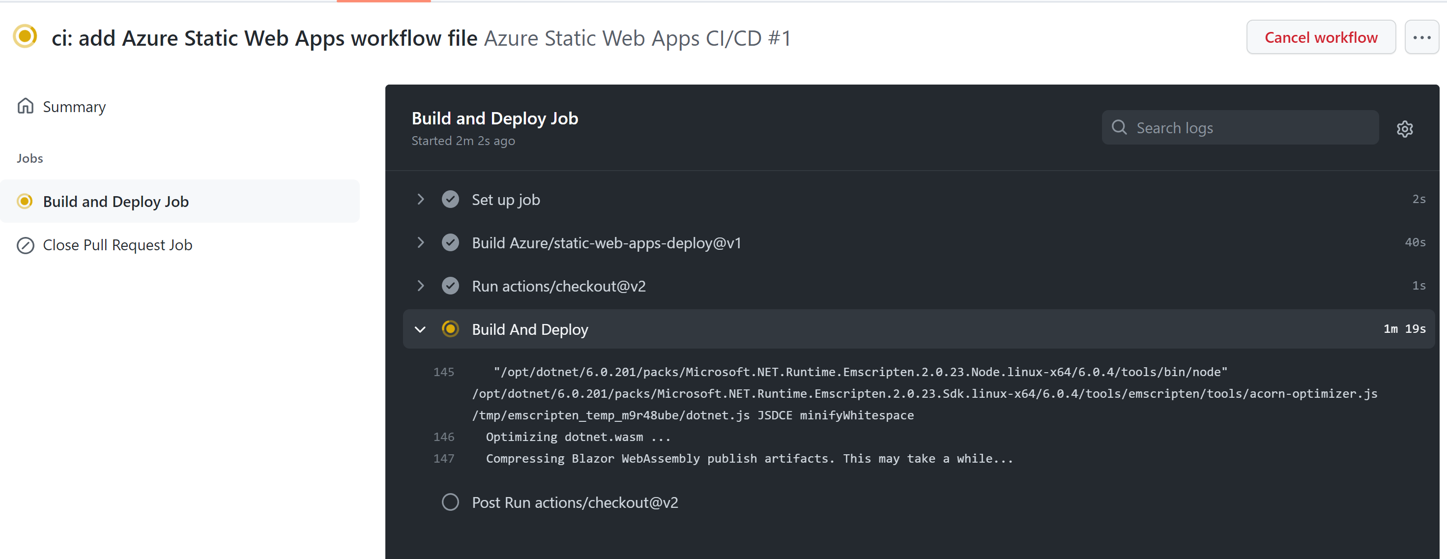 8. Wait for the workflow to complete successfully.