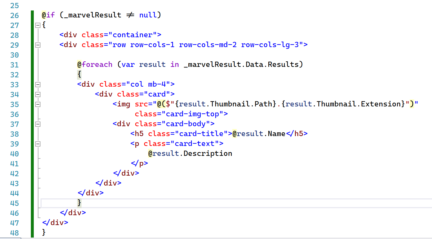 @foreach(var result in _marvelResult.Data.Results)